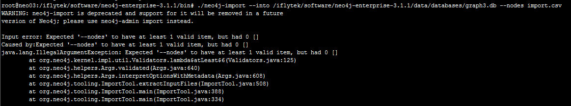 使用neo4j-import导入节点报错:Expected '--nodes' to have at least 1 valid item, but had 0 []